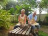 This was work, the grinding, the shredding, the rolling, the chopping, squeezing, slicing, squatting,standing,kneeling. No oven or food processor here, blender or juice extractor. Just the food ingredients, a knife, a granite chopping block and a camp gas stove and two hours later a seafood curry, rice and some tasty sticky dessert in banana leaves was our gourmet lunch.